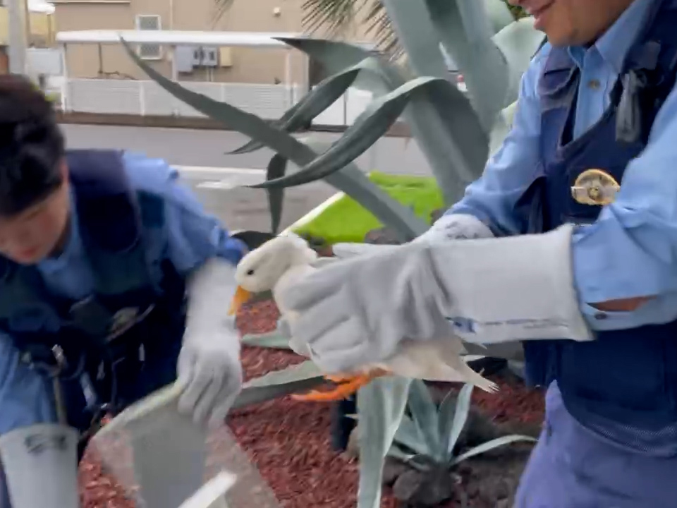 アヒルの保護にご協力いただいたおまわりさんには心より感謝申し上げます。