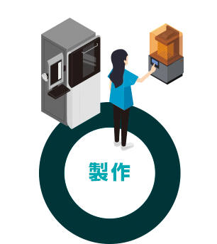 製作3Dプリンター又は加工機で加工し、場合によっては手作業で研磨、またはステイン等の調整を行います。